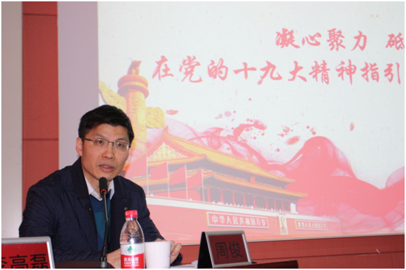 1月22日下午,公司党委书记、执行董事周俊同志为全体党员干部职工作了题为《凝心聚力 砥砺前行——在党的十九大精神指引下续写路桥新篇章》的专题党课宣讲,党课由公司纪委书记、常务副总经理李高磊同志主持。