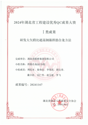 近日,由湖北省建设工程质量安全协会主办的“2024年湖北省工程建设优秀QC成果交流发布会”圆满落幕。湖北路桥聚焦丹江口水都二桥、京港澳改扩建1标等重点项目,研发多项关键核心技术,荣获21项省级优秀QC成果,其中Ⅰ类成果12项、Ⅱ类成果5项、Ⅲ类成果4项,Ⅰ类成果获奖比例远超全省平均水平。