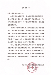 两封赞誉信是对湖北路桥项目团队严把安全质量关、高效完成项目建设的充分认可,更是对湖北路桥持续深耕鄂州、服务鄂州的精神激励。在全力打造人民满意工程、推动交通运输事业高质量建设的道路上,湖北路桥将紧紧围绕“建科技精品,树历史丰碑”企业目标,继续精益求精,砥砺前行,匠心打造高品质工程,为交通强国建设贡献力量!
