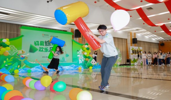 趣味游戏环节,大家积极踊跃参与,限时钓粽子、魔方比大小、“赶鸡入笼”接力赛、“一锤定音”砸气球……现场欢呼声、呐喊声,此起彼伏,高潮迭起。