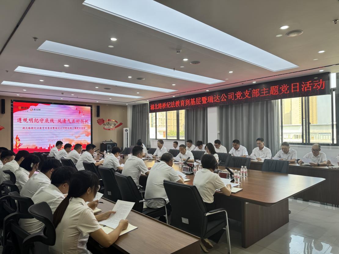 为引导党员干部学纪、知纪、明纪、守纪,真正将纪律规矩转化为政治自觉、思想自觉、行动自觉,持续营造风清气正、干事创业的良好政治生态,7月22日,湖北路桥党委委员、副书记黄宗远,湖北建投、湖北路桥党委委员、纪委书记王运红赴瑞达公司开展“遵规明纪守底线,风清气正好扬帆”纪法教育到基层活动暨瑞达公司党支部7月主题党日活动。